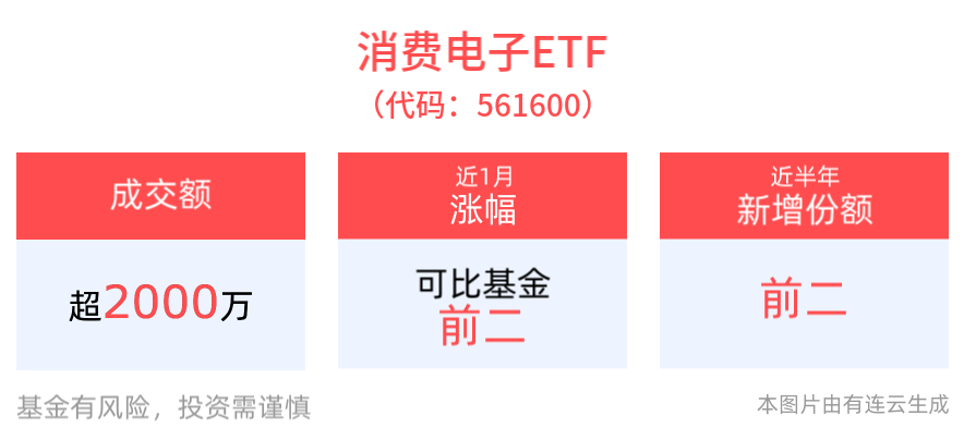份额方面,消费电子ETF近半年份额增长4300.00万份,实现显著增长,新增份额位居可比基金2/5。