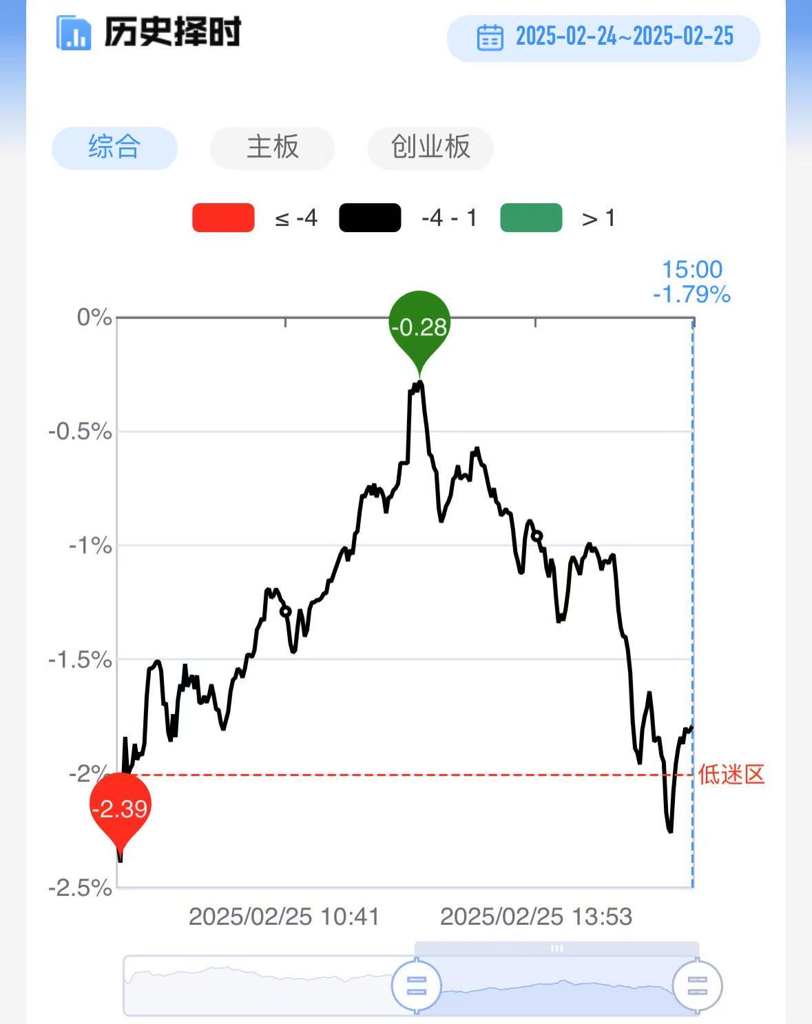 今日短线情绪全天冲高回落,仍处于0轴~低迷区附近震荡。