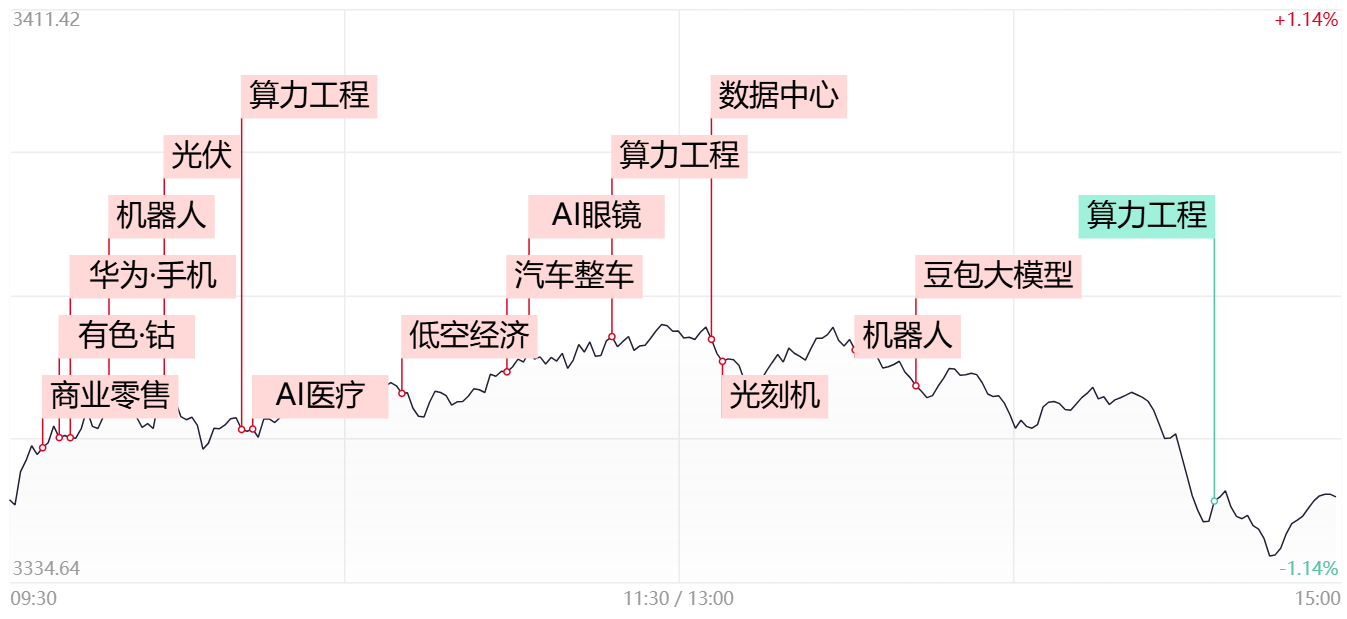 今日午后市场再度陷入调整,三大指数震荡走低最终均小幅跌破5日线,若明日无法快速修复的话,市场短线或将进入短线调整阶段。不过目前市场的中期趋势已转入多头,结合目前市场量能依旧能够维持在1.5万亿之上,只要没有出现连续的破坏性下跌,预计本轮回调的时间与空间或相对有限。待短线风险充分释放后,依旧可围绕着AI与机器人两大主线方向去寻找低吸机会。若市场想要再度转强的话,热门题材高位人气股亏钱效应何时修复,以及科技主线中能否形成热门新分支,仍是后续两大关注的重点。