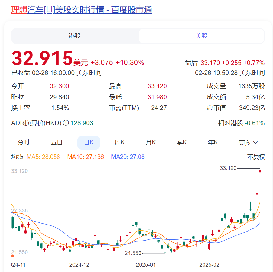 昨夜美股,蔚小理等也纷纷大涨,涨幅均超过10%。