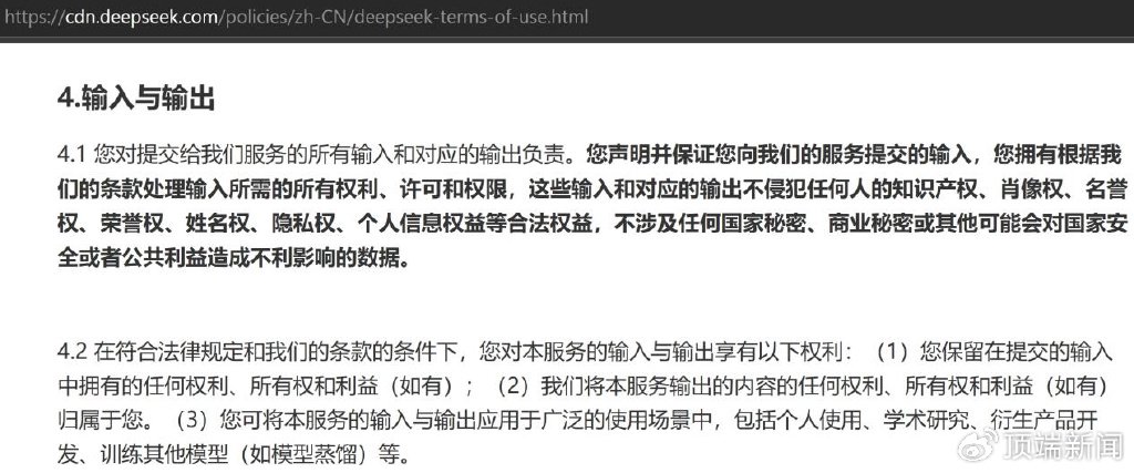 截取自DeepSeek官网《用户协议》