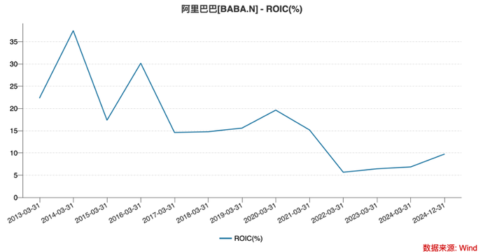 根据WIND统计2025财年前三个季度(2024自然年Q2-Q4),阿里ROIC跃升到了9.75%,全财年重回双位数应该没太大悬念。