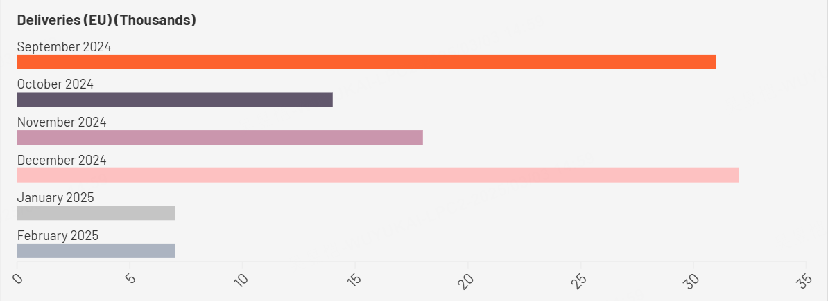 但欧洲交付数据下滑已经是“Price-in”的结果,而另一个问题更大,目前可能还不够Price-in,