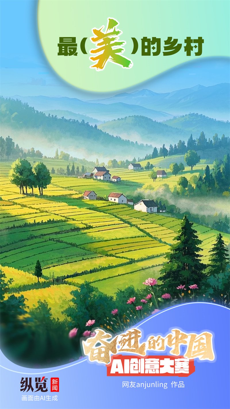 今天,“奋进的中国”纵览AI系列海报推出第二组——最美的乡村。