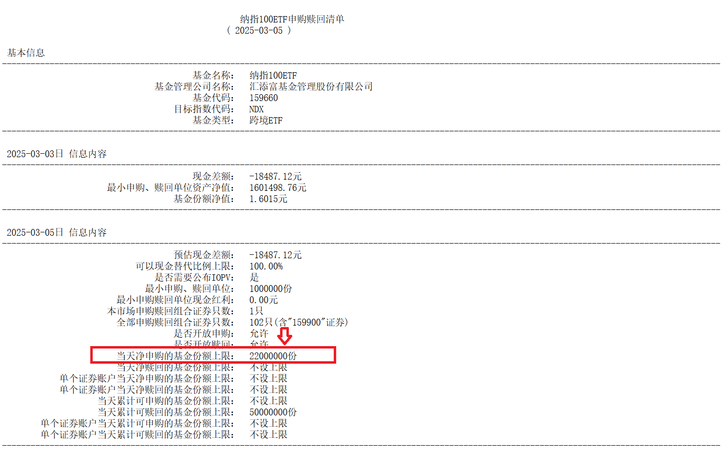 当地时间3月4日美国三大股指全线收跌,道指跌1.55%,标普500指数跌1.22%,纳指跌0.35%。以科技股为主的纳指100(NDX)跌0.36%。热门ETF方面,纳指100ETF(159660)全天窄幅震荡,微跌0.18%,成交额超3.8亿元,环比爆增186%!资金汹涌增仓,纳指100ETF(159660)盘中净申购触达当日申购上限2200万份,已连续4日获资金累计净流入超9000万元!