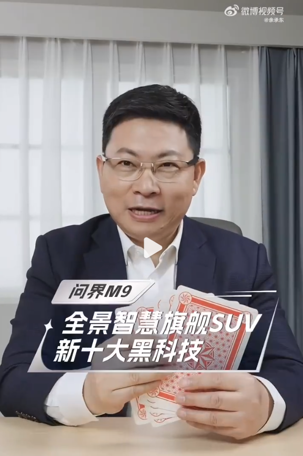 余承东发布预热视频,他说,“我出牌了,这把还挺大”,明确表示2025款问界M9本月即将上市,问界M8将于4月上市,两者组成问界“王牌”。