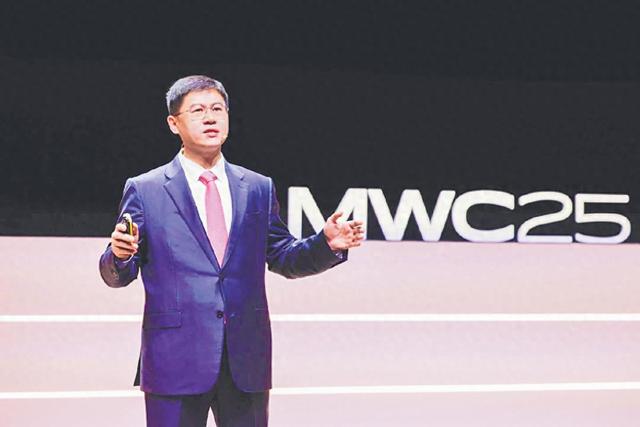 华为高级副总裁、ICT销售与服务总裁李鹏在MWC25上发表主题演讲。