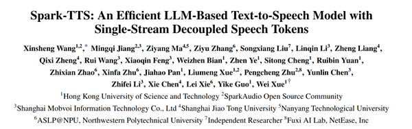 近日,出门问问联合国内外顶尖的学术研究机构香港科技大学、上海交通大学、南洋理工大学、西北工业大学,开源了新一代语音生成模型Spark-TTS,并发布于开源社区SparkAudio。