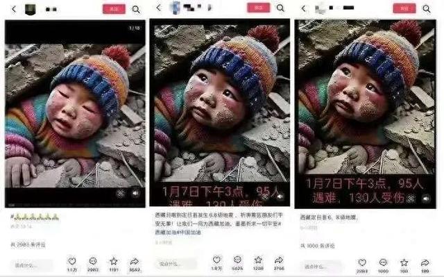 随着AI技术普及,一些网民利用AI生成逼真的地震灾害图片或视频,极具迷惑性,让不明真相的民众信以为真。
