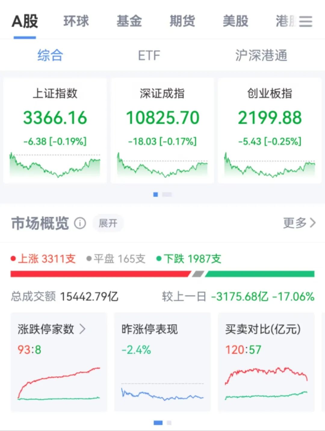 3月10日,市场全天震荡调整,三大指数小幅下跌。A股全天总成交额1.54万亿元,较上个交易日缩量3175.68亿元。截至收盘,沪指跌0.19%,深成指跌0.17%,创业板指跌0.25%。