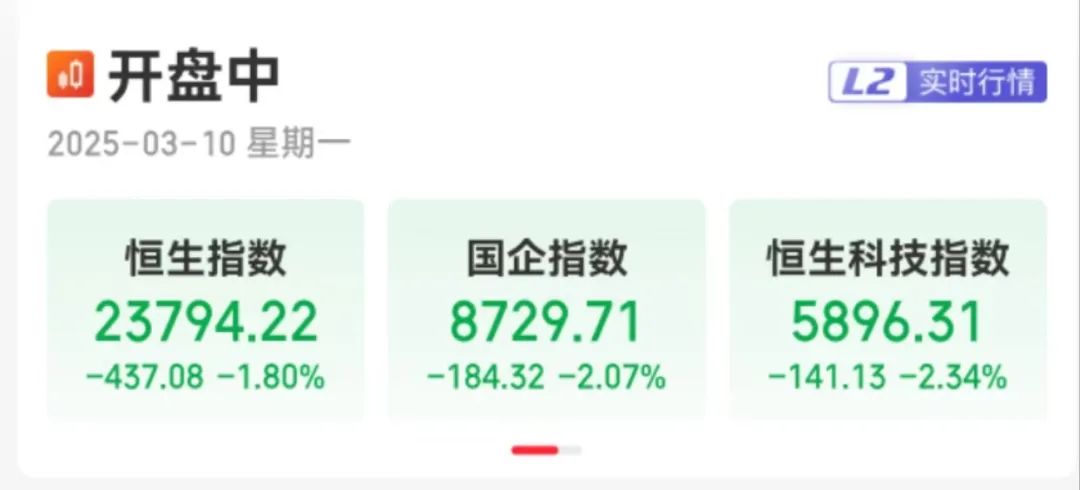 港股方面,截至发稿,恒生指数跌1.8%,恒生科技指数跌近2.34%,科技股领跌,中芯国际跌4.4%,阿里巴巴跌3.5%,腾讯控股跌2.81%。