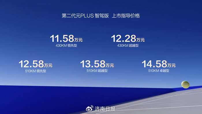 全民智驾,元力全开。第二代元PLUS智驾版携五大升级震撼来袭,11.58万元起入门即享高阶智驾,不仅重塑A级纯电SUV“智”高点,更重塑了A级纯电SUV“值”高点,真正做到了让好技术人人可享。第二代元PLUS智驾版未来可期。(济南日报▪爱济南记者:孙伟江)