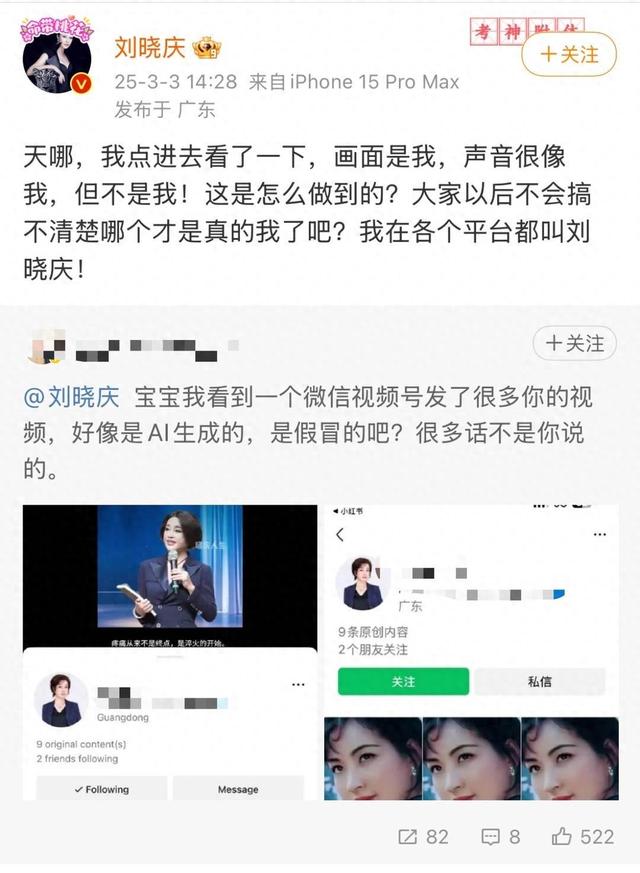 3月3日,刘晓庆迅速澄清AI视频的虚假,呼吁粉丝认准官方账号,该AI生成虚假视频的视频号最终被封禁。他们的及时回应,是阻止谣言扩散的一道防线。除此之外,靳东、雷军在两会期间建议加强AI立法,古天乐、林峯通过公司发布声明,也是对于AI技术滥用的有效遏制。