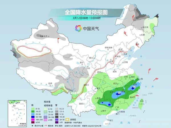 冷空气携雨雪降温大风天气来袭!随着冷空气东移南下,12日起中东部将自北向南陆续迎来降温,13日前后还将有新一股冷空气接棒,两股冷空气接连来袭,多地累计降温幅度可超10℃,经历冷暖转换。12日,内蒙古东北部、东北地区北部和东部、新疆北部和南疆西部山区、西藏东部、青海南部、川西高原等地部分地区有小雪或雨夹雪,其中,黑龙江北部等地部分地区有中到大雪,局地暴雪。江淮西部、江南大部、华南北部等地部分地区有中到大雨,其中,湖南中部、江西中部、浙江中部、广西东北部等地部分地区有暴雨。