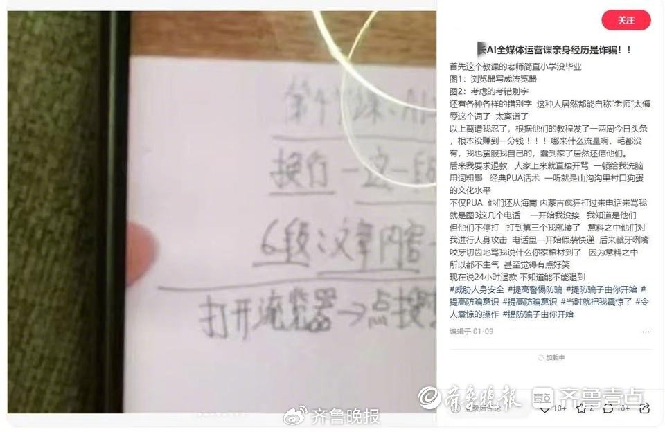 陆女士告诉齐鲁晚报·齐鲁壹点记者,去年12月她通过网络广告接触到一门标价299元的“AI全媒体运营课”。因为陆女士自己也在运营社交媒体账号,于是想学习一下利用AI来运营。