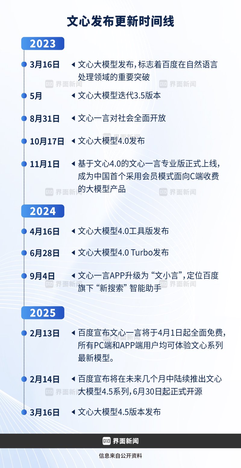 于是“开源冲击闭源”一同成为百度这场大模型历程中一个戏剧化节点。2月14日,百度宣布将在未来几个月中陆续推出文心大模型4.5系列,6月30日起正式开源。