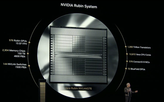 具体而言,采用Blackwell Ultra架构的芯片包括GB300 NVL72等。Blackwell NVL72的算力(FLOPS)是GB200 NVL72的1.5倍,该架构还有1.5倍更快的存储和2倍更大的带宽。Rubin NVL144将有更大算力、更大带宽和更大内存,搭载HBM4内存。Rubin Ultra NVL576将搭载HBM4e内存,算力是GB300 NVL72的14倍,内存速度是8倍。随着架构迭代,黄仁勋表示, AI工厂的算力成本将得到相应降低。