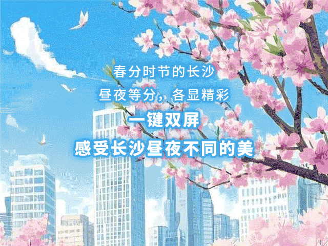 春分时节的长沙,昼夜等长,各自精彩。解锁一键双屏,带你感受长沙昼夜不同的美!