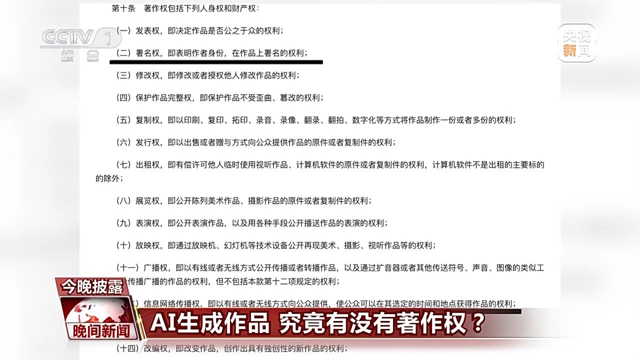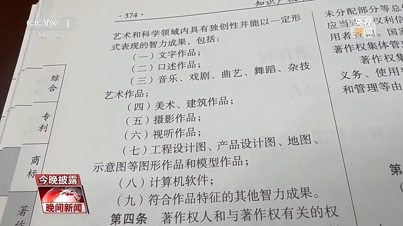 中国社会科学院法学研究所知识产权室主任 管育鹰:就单纯的AI系统生成的生成物,它肯定不是作品,因为它的过程它不是一个创作的过程,它应该是前端有很多数据输入训练之后,根据算法把这些数据重新按照它的算法逻辑组合,然后这样输出来的。