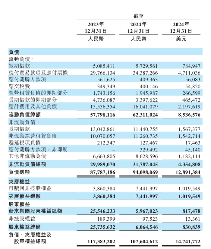 不见根本性缓解的成本控制引发持续亏损的同时,也让蔚来的财务状况犹如高压锅:2024年蔚来现金储备接近420亿,可流动负债已经超过流动资产,流动比率小于1,面临短期债务偿还的压力。