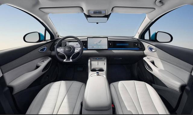 内饰延续海洋美学设计,营造出简约雅致的海蕴座舱。主仪表台采用内嵌式8.8英寸全液晶仪表+12.8英寸高清悬浮Pad,视觉效果开阔,层次感丰富。海狮05EV还采用了怀挡式电子换挡,操作更加便捷。门板处等内饰材质还应用了仿纤维的皮革软包材质,更细腻更耐用,令座舱美感与实用性兼备。