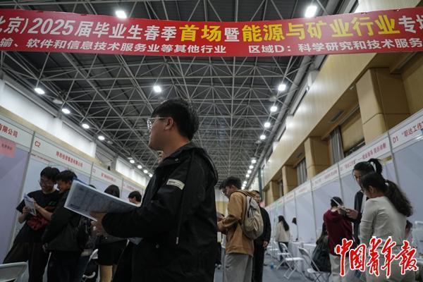3月21日,中国矿业大学(北京)举办2025届毕业生春季首场暨能源与矿业行业专场就业双选会。中青报·中青网见习记者 陈宇龙/摄