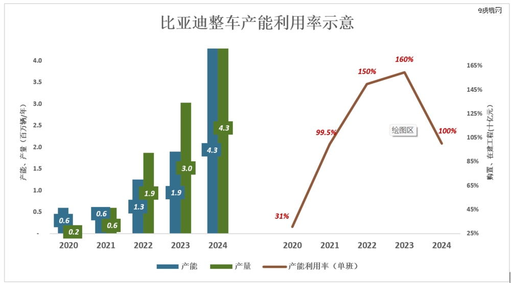 2024年,产能、产量均为428万辆,产能利用率回到100%(说明更多生产基地进行双班生产);