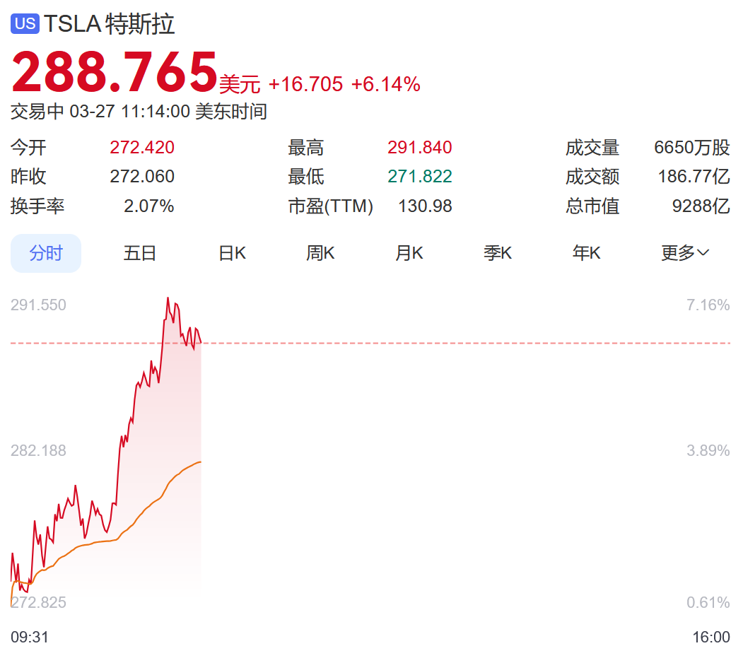 值得注意的是,截至发稿,特斯拉股价大涨超6%,近5日涨幅已经达到22%