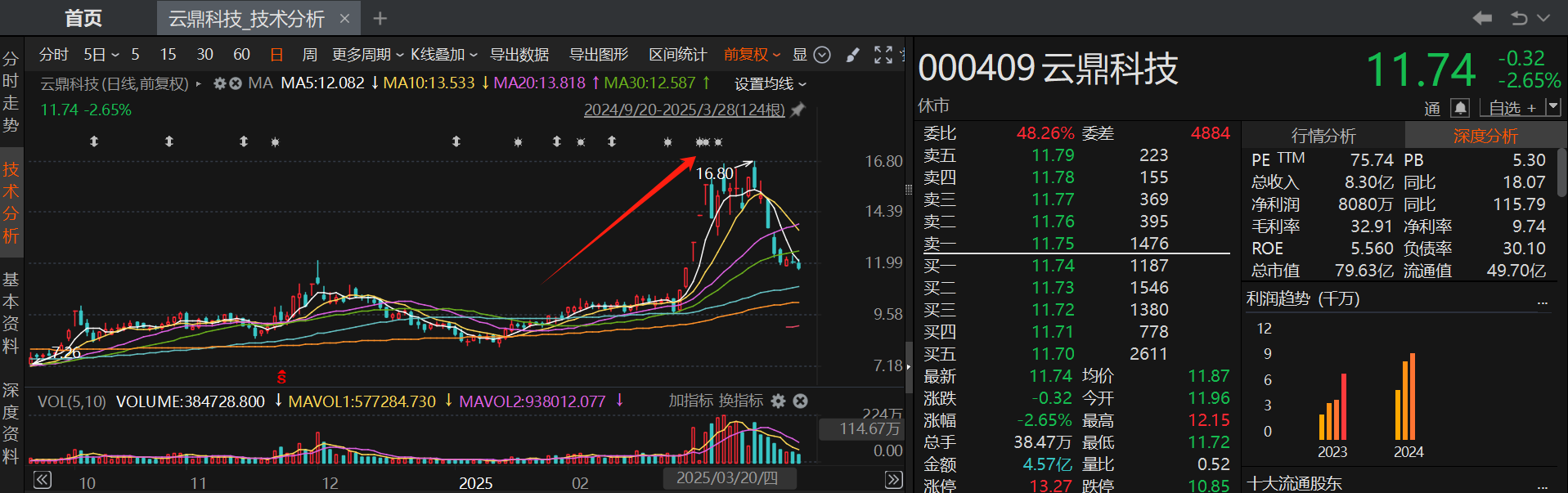 人工智能概念股云鼎科技自3月低点迄今股价累计最大涨幅为72%。云鼎科技3月7日发布投资者关系活动记录表公告,在人工智能应用业务方面,公司与合作伙伴持续深化大模型技术在工业应用的合作,聚焦能源行业,解决行业痛点和难点。截至目前,已累计开发应用场景110余类,覆盖矿山、化工、油气等不同行业,并在70余家单位完成规模化推广应用。云鼎科技拥有解决方案专家、工业智能技术专家、矿山业务专家、研发骨干等900余名,占公司总人数的79%。公司融合能源行业技术人才、IT技术人才叠加优势,运用丰富的能源行业人工智能项目落地实践经验,研发出更能解决能源行业痛点问题、更具应用价值的产品。