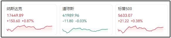 大型科技股多数上涨,微软、英伟达、谷歌、Meta、亚马逊涨超1%,苹果小幅上涨;英特尔跌近3%,奈飞小幅下跌。