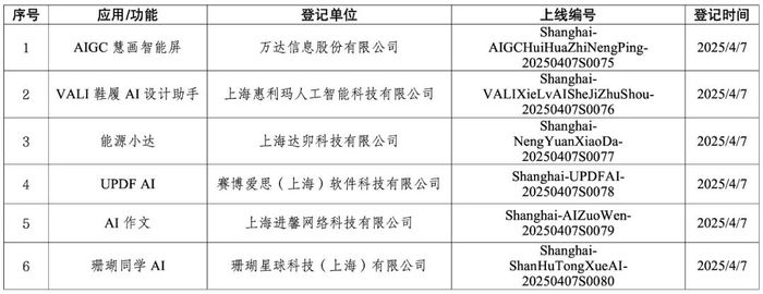 “网信上海”微信公众号消息,截至4月7日,上海市新增6款已完成登记的生成式人工智能服务,累计已完成80款生成式人工智能服务登记。