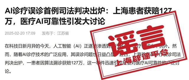在这些谣言中,“AI医生”除了误诊,还有致人死亡的“案例”。有的发生在上海,受害人家属获赔127万元,有的发生在北京,受害人家属获赔1.2亿元。