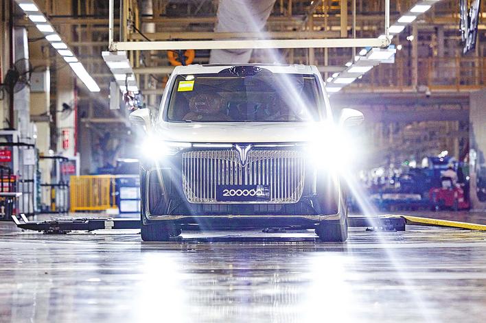 四月九日,武汉经开区的岚图汽车总装车间内,随着一辆全新岚图梦想家商务车缓缓驶出,岚图汽车第二十万辆整车下线。(湖北日报全媒记者 薛婷 摄)