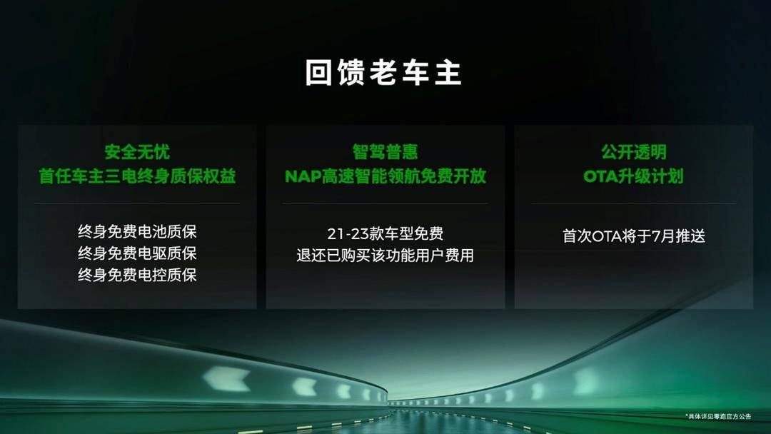 2、即日起能够支持使用NAP高速智能领航功能的老款车型,未来将全部免费开放,前期购买过该功能的用户零跑将退还相应费用。