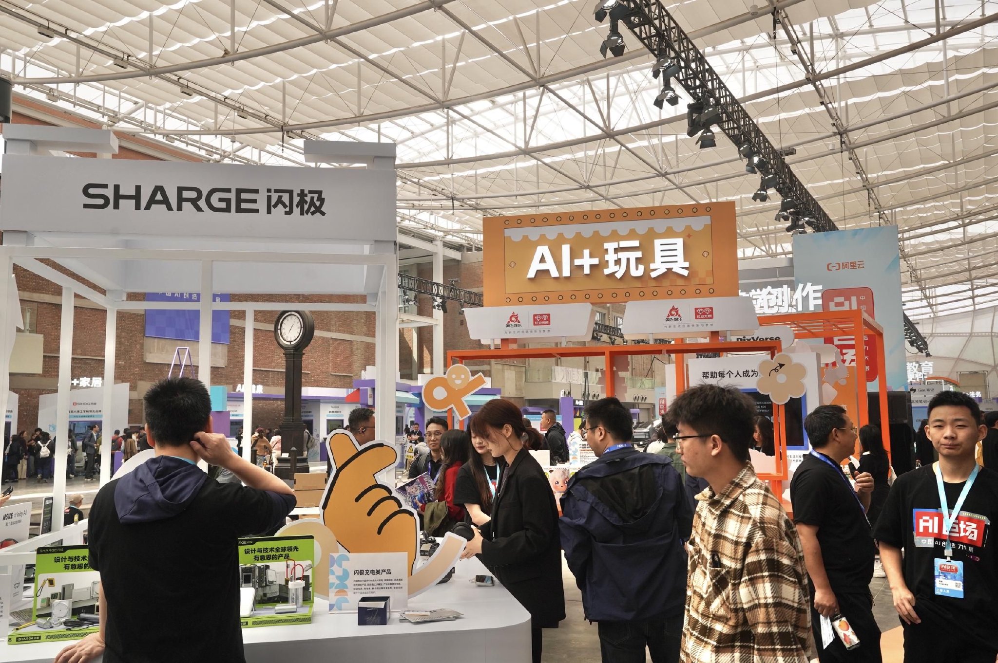 展区共分为机器人、娱乐、生活、生产力、学习等五大板块,吸引了宇树科技、加速进化、伟景智能、小鹏汇天、闲鱼、B站、奥飞娱乐、爱诗科技、昆仑万维等百余家企业参展,将为大众带来陆地飞车、AI眼镜、AI玩具、AI扫地机器人、AI宠物等丰富展品,以及AI家教、AI法务、AI写剧本、AI写代码、AI音乐编曲、AI记笔记等各类智能服务体验。活动现场还有和机器人现场组队踢足球、AI剧场小舞台SHOW、搭乘“AI创造力快线”收集“灵感值”赢礼品等多元互动内容。