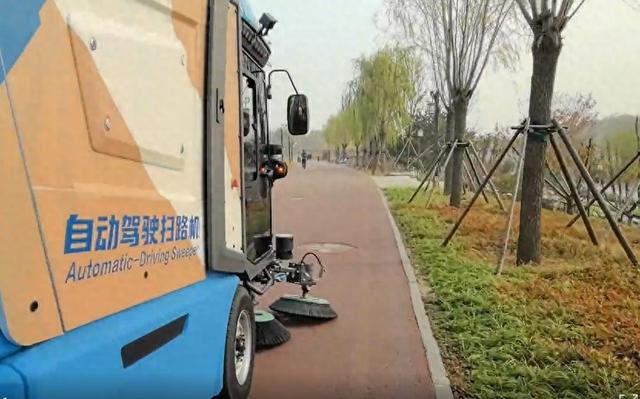 在北坞公园,AI无人驾驶清扫车正在静悄悄地忙碌着。这种作业车集扫路车和高压清洗车功能于一体,搭载了高性能的磷酸铁锂电池、永磁同步电机、BMS电池管理系统,能够实现全天候无人自动化清扫,还能在一次作业过程中完成清扫、高压清洗和垃圾、污水收集等工作。