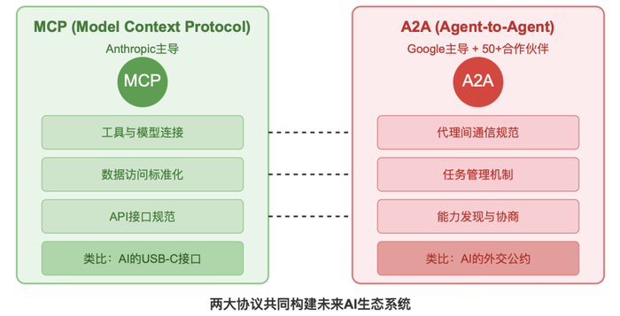 相比MCP专注于让AI模型与外部工具和数据连接,A2A则更进一步,聚焦于智能体之间的高效协作。