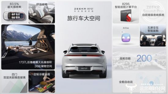 极氪001是全能猎装开创者,极氪007GT是全能猎装普及者。作为极氪猎装家族新成员,极氪007GT定位“科技猎装轿跑”,延续极氪猎装全能产品标准,在兼顾空间与豪华的同时,驾控更灵活,体验更科技,造型更时尚。