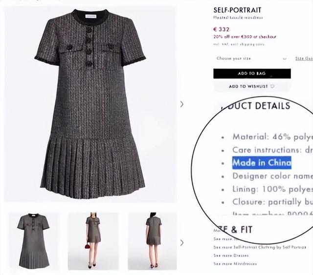 此前,不少网友贴图表示,卡罗琳·莱维特所穿的某英国品牌服装,在相关商品详情页可以明显看到"Made in China"字样。