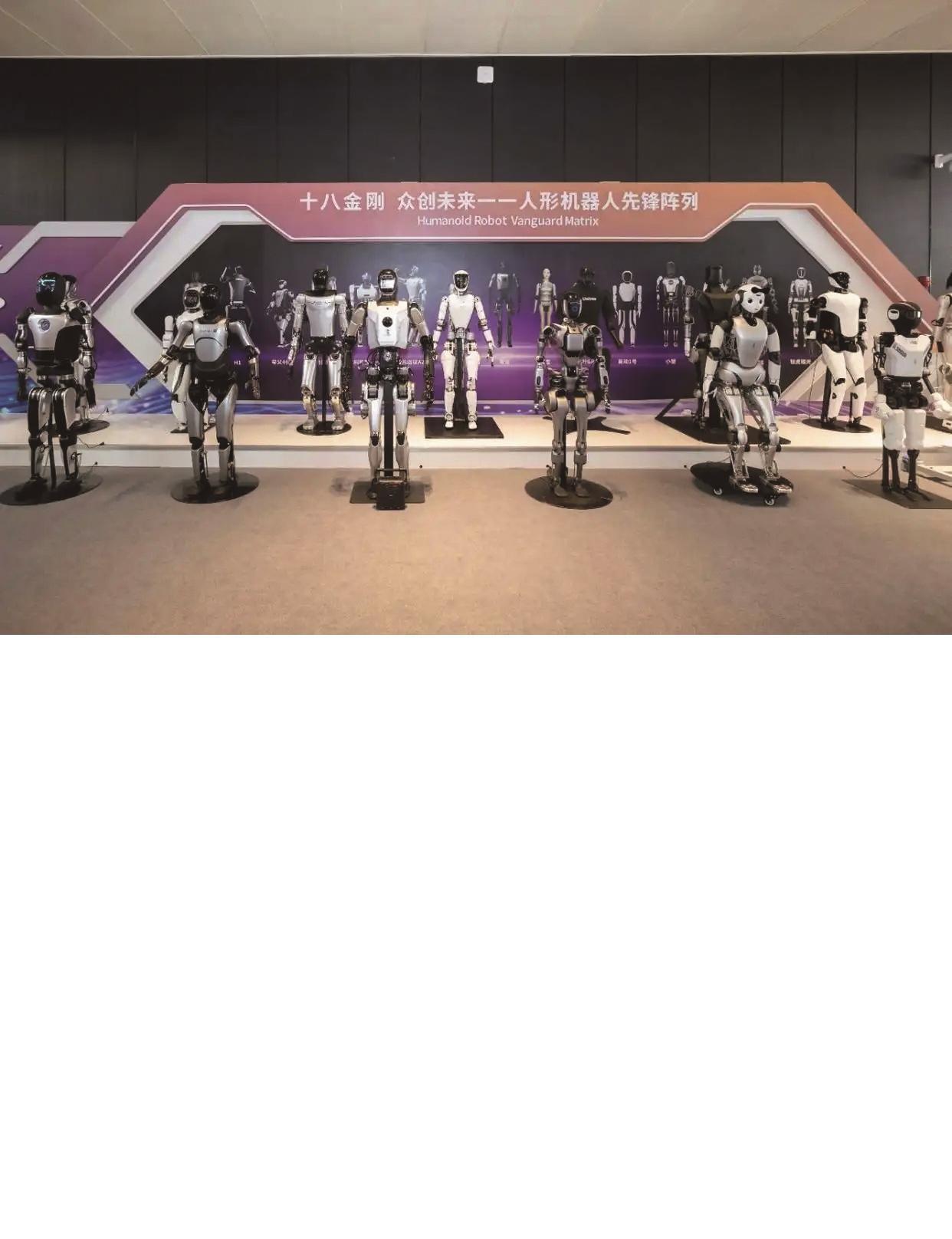 2024世界人工智能大会展出的“十八金刚 众创未来——人形机器人先锋阵列”。新华社发