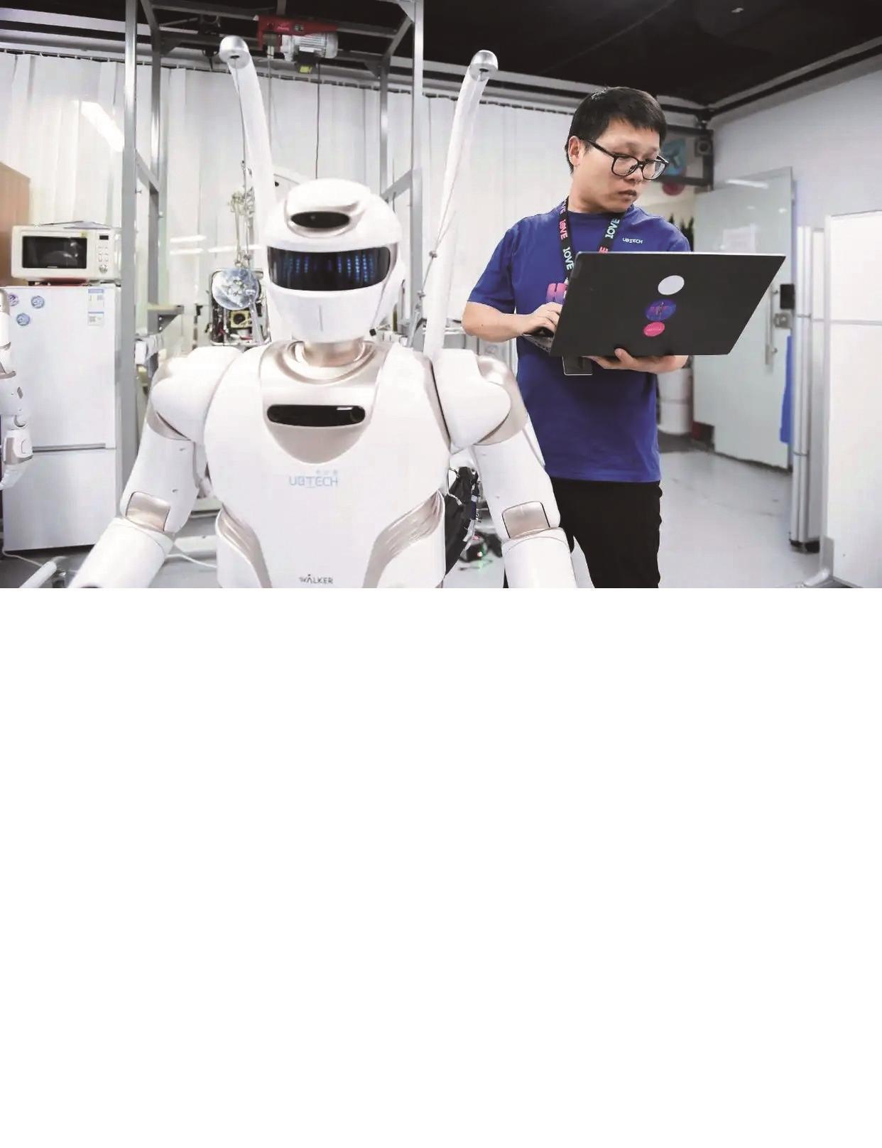工作人员对人形机器人Walker X进行测试。新华社发