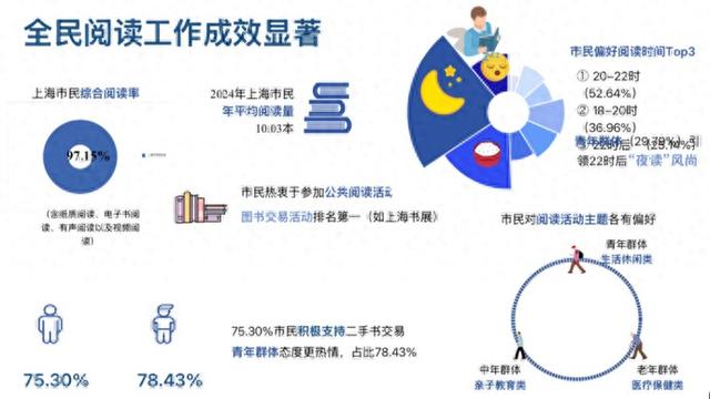 2024年上海市民综合阅读率达97.15%,人均阅读量超10本;数字阅读连续三年登上市民偏好阅读方式榜首,数字阅读付费行为愈发普遍;上海书展等图书交易活动受追捧,市民参与二手书交易热情高涨……昨天,《2024年上海市民阅读状况调查》发布,披露一组组指数,呈现了各群体在阅读中怡然自得,“人民城市”满城书香浓厚。