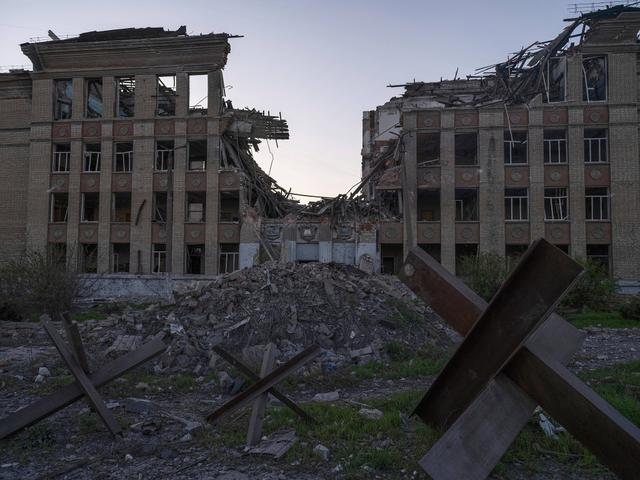 当地时间2025年4月20日,乌克兰莱曼,在复活节庆祝活动期间,镇上的建筑遭到炮火袭击。