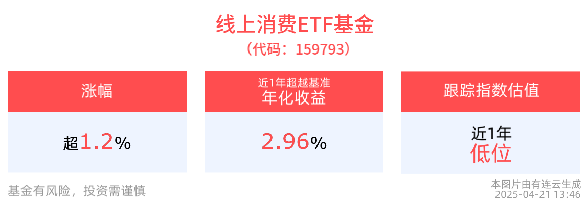 截至2025年4月21日 13:46,中证沪港深线上消费主题指数(931481)上涨0.86%,成分股横店影视(603103)上涨10.03%,光线传媒(300251)上涨9.65%,浙数文化(维权)(600633)上涨4.20%,卫宁健康(300253)上涨3.87%,蓝色光标(300058)上涨3.72%。线上消费ETF基金(159793)上涨1.29%,最新价报0.86元。拉长时间看,截至2025年4月18日,线上消费ETF基金近3月累计上涨8.39%。