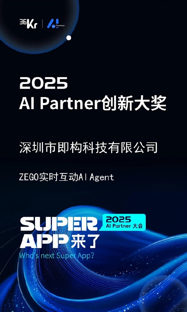 随着人工智能技术的不断成熟,AI应用正逐步深入千行百业,成为推动各行业数字化、智能化转型的重要力量。4月18日,36氪2025年AI Partner大会在上海举办。本次大会上36氪发布了相关奖项。即构科技实时互动AI Agent获评2025 AI Partner创新大奖。
