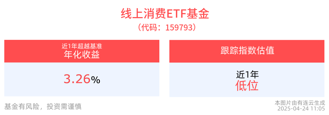 拉长时间看,截至2025年4月23日,线上消费ETF基金近1周累计上涨3.79%。