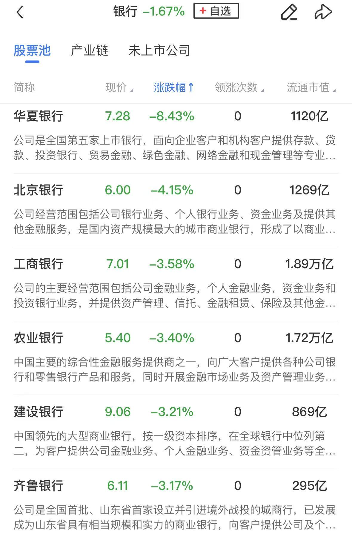 而另一方面,近期持续走强的银行股集体陷入调整,华夏银行跌超8%,工商银行、农业银行、建设银行、招商银行等均跌超3%。