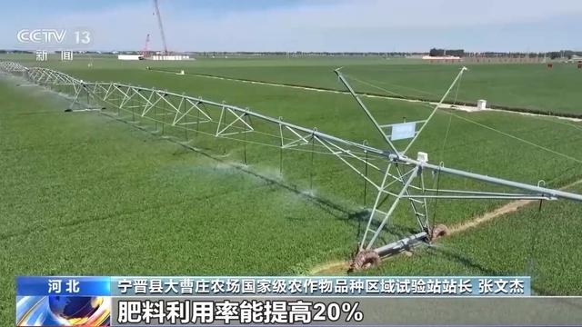 宁晋县大曹庄农场国家级农作物品种区域试验站站长 张文杰:我们就通过一键启动喷灌机,比传统的灌溉模式节水30%,肥料利用率能提高20%。