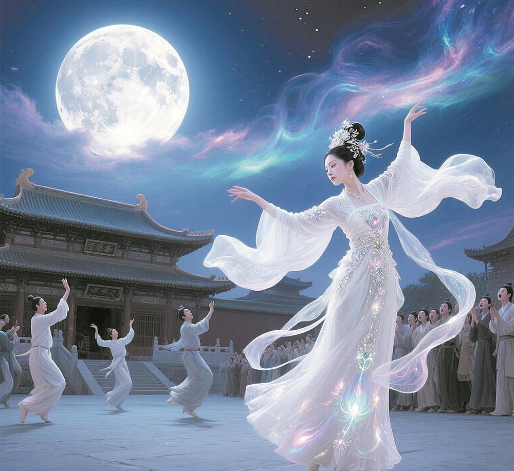 AI根据关键词绘画的大唐《霓裳羽衣曲》。