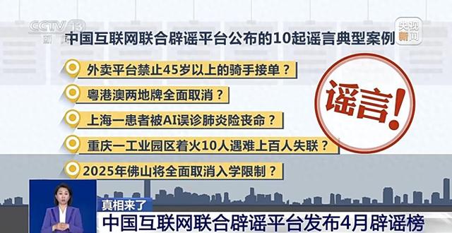 近日,中国互联网联合辟谣平台发布了2025年4月辟谣榜,其中都有哪些言论是网络博主为了博取流量、吸引关注而炮制的谣言呢?